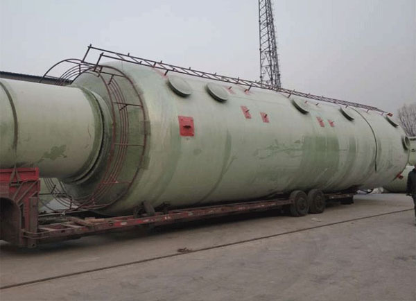 玻璃鋼酸霧凈化塔分單塔體和雙塔體。采用圓形塔體,用法蘭分段聯(lián)接而成。具體由貯液箱、塔體、進(jìn)風(fēng)段、噴淋層、填料層、旋流除霧層、出風(fēng)錐帽、觀檢孔等組成。