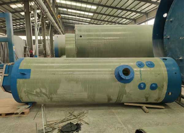 新型材料:泵站筒體結構由纖維纏繞玻璃鋼(GRP)制成,采用意大利(VEM)公司設備,全自動化控制連續(xù)纏繞型,確保厚度均勻并達到設計的剛度,質量穩(wěn)定優(yōu)良。